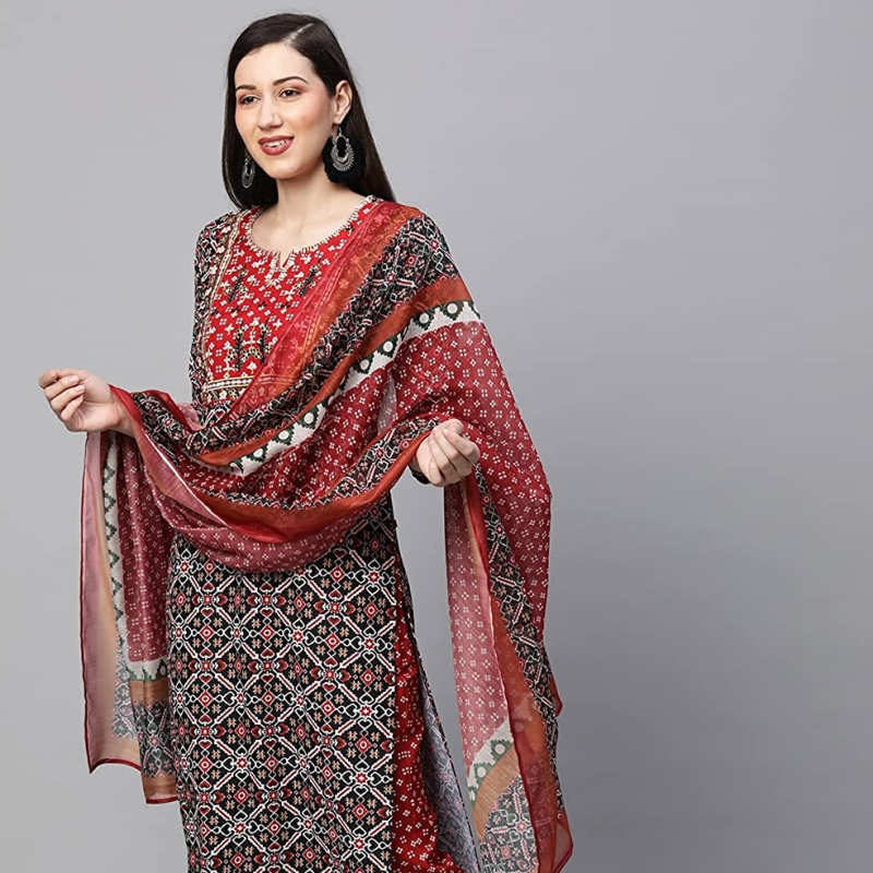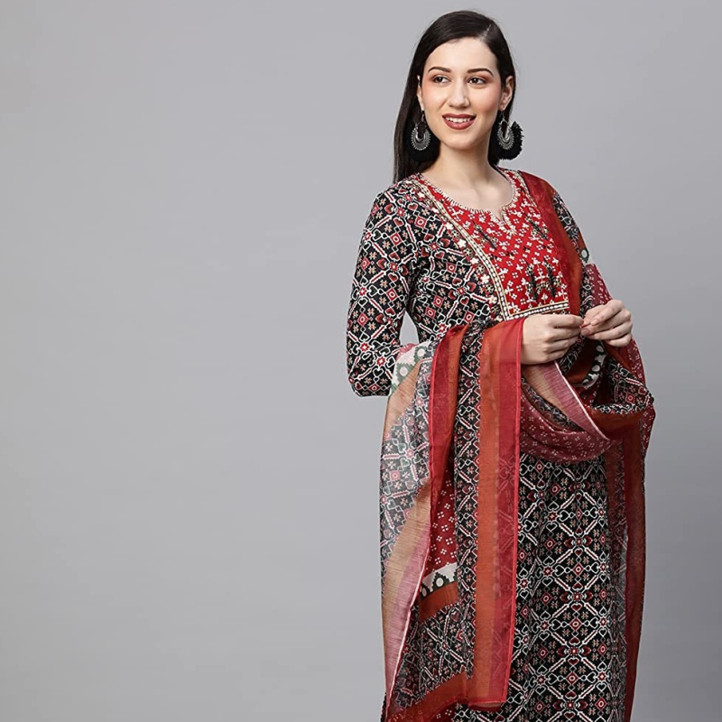 • Kurta Fabric: Cotton Blend (60%cotton,40%Polyester) || Bottom Fabric : Cotton Blend (60%cotton,40%Polyester) || Dupatta Fabric : Cotton Blend (60%cotton,40%Polyester)