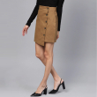 • Brown solid straight skirt, has a partially elasticated waistabnd, button closures, stylised asymmetric hem