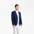 • Navy Blue solid slim-fit formal blazer, has a notched lapel collar, long sleeves, two flap pockets, one chest pocket, single-breasted with a button closure and has double vented back at hem