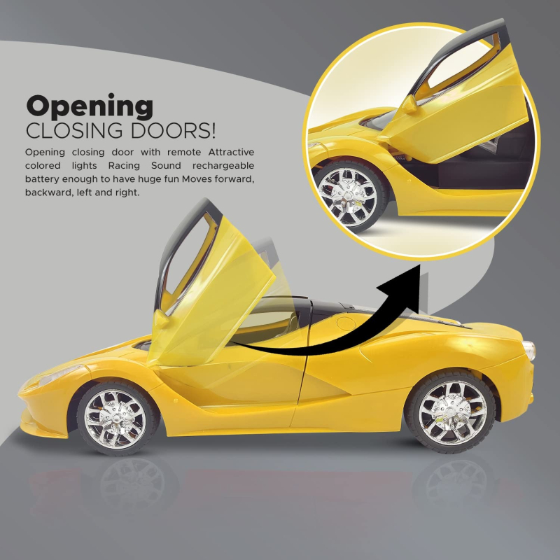• Car doors open and close in style and can be remote controlled. LED head lamps make it even more appealing.