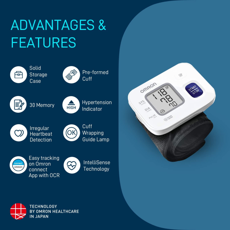 Omron HEM 6161 Fully Automatic Wrist Blood Pressure Monitor with Intellisense Technology