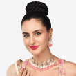 Pink Stones & Layer Cluster Beads Kundan Flowers Choker Necklace