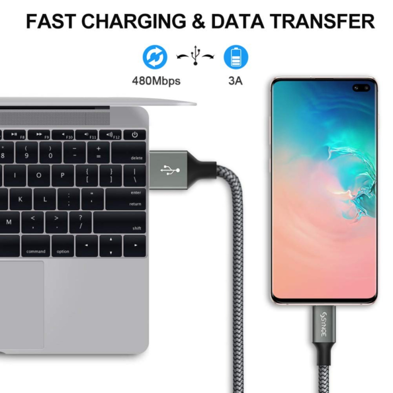 • EXTREME DURABILITY: With a tested 20000+ bend lifespan, Synqe USBc charging cable with heavy-duty braided and strong metal connections is far more durable